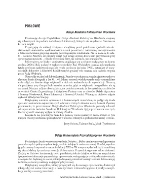 Przekazując do rąk Czytelników Dzieje Akademii Rolniczej we Wrocławiu, czujemy